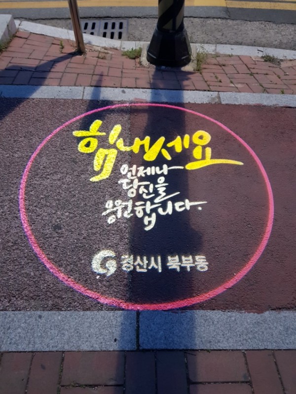 “힘내세요! 언제나 당신을 응원합니다!”북부동(동장 손원학)은 지난 14일 조영동 영남대학교 정문 앞 등 7곳에 따뜻한 힐링메세지를 전하는 프로젝터 가로등을 설치했다.