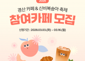 「2026 경산 카페 & 신비복숭아 축제」참여 카페 모집 (재)경산문화관광재단(이사장 조현일)은 오는 6월 27일부터 7월 1일까지 개최되는「2026 경산 카페 & 신비복숭아 축제」를 함께 이끌어 갈 관내 참여 카페를 모집한다. 이번 축제는 6월 27일부터 7월 1일까지 5일간 관내 참여 카페 20개소에서 진행되고, 6월 26일과 . . . 작성자 경일신문 / 작성일 03-11