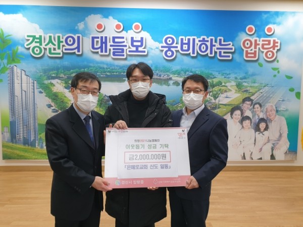 이병호 압량읍장은 코로나 때문에 어려운 경기 속에서도 잊지 않고 매년 따뜻한 나눔에 동참해 주신 데 대해 감사드리며, 기탁 하신 성금은 어려운 이웃들에게 삶의 희망과 용기가 될 것이다.”라고 감사의 인사를 전했.