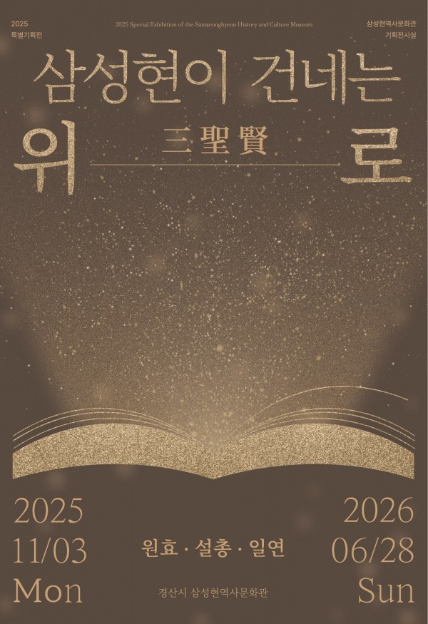 경산시 삼성현역사문화관이 특별기획전 “삼성현(三聖賢)이 건네는 위로” 展을 선보인다. 이번 전시는 11월 3일 개막식을 시작으로 내년 6월 28일까지 삼성현역사문화관 1층 기획전시실에서 열린다.