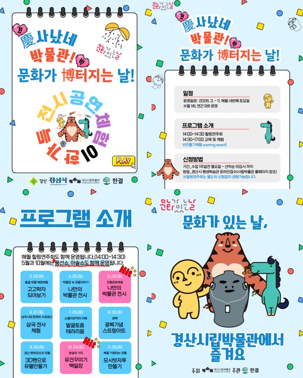 올해는 「경(慶)사났네, 박물관! 문화가 박(博) 터지는 날」이라는 주제로, 2026년 3월부터 11월까지 매월 네 번째 토요일 오후 1시부터 4시까지 경산시립박물관 일원에서 총 9회에 걸쳐 운영된다.