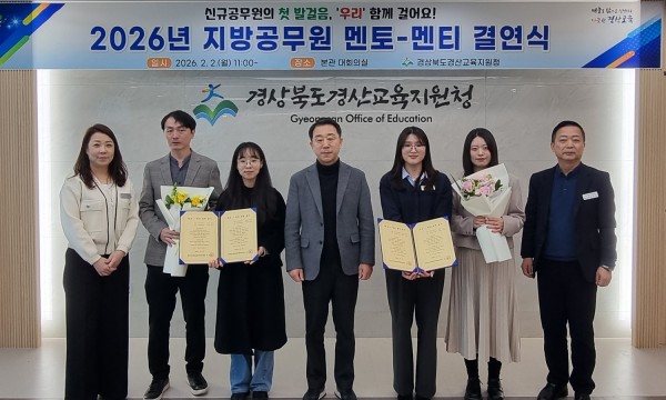 경산교육지원청 정수권 교육장은 2일(월) 오전 11시부터 교육지원청 5층 대회의실에서 신규 공무원 2명과 선배공무원들이 참석한 가운데 지방공무원 후견인제(멘토-멘티) 결연식을 했다.