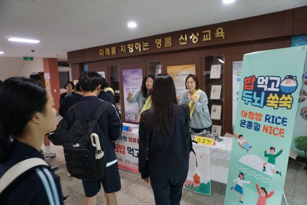 행사장 한편에서는 나는 평소에 아침밥을 먹는다, 가끔 먹는다, 먹지 않는다.’는 내용을 주제로 한 설문조사도 함께 진행되었다. 학생들은 자신의 아침 식사 습관에 따라 스티커를 붙이며 서로의 식습관을 돌아보고, 아침밥의 중요성에 대해 자연스럽게 생각해 보는 시간을 가졌다.