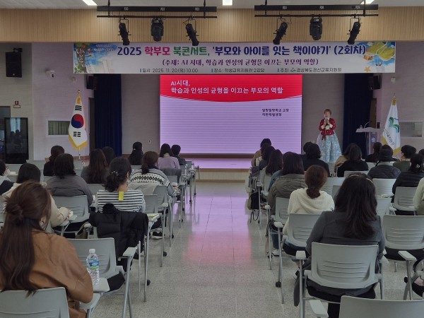 경상북도경산교육지원청(교육장 정수권)은 지난 11월 20일(목) 학생교육지원관 강당에서 개최한 ‘2025 부모와 아이를 잇는 책 이야기’ 북콘서트 행사를 성황리에 마무리했다고 밝혔다. 경산 관내 유·초·중·고 학부모 약 80여 명이 참석하여 미래 교육에 대한 높은 관심을 보였다.