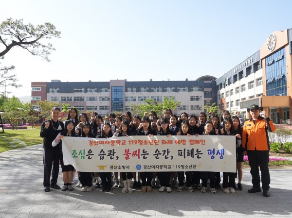 경산소방서, 경산여중 119청소년단과 봄철 화재예방 캠페인 실시