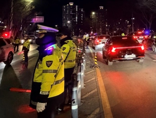 또한, 지난 2. 6.(금) 20시~23시경 경찰관 기동대를 30명을 지원받아 들뜬 명절 분위기에 법규위반자 사전 단속 및 교통사고 예방 목적으로 대대적 일제 음주운전 단속을 실시하여, 개인형이동장치(PM) 무면허 1건, 음주단속 3건(정지1·취소2)을 적발하였다고 밝혔다. 명절 기간 중 경찰관 기동대는 집회시위 업무에서 벗어나 음주운전 위험성에 대한 경각심을 높이기 위해 음주단속등 민생 치안업무에 집중 전환된다.