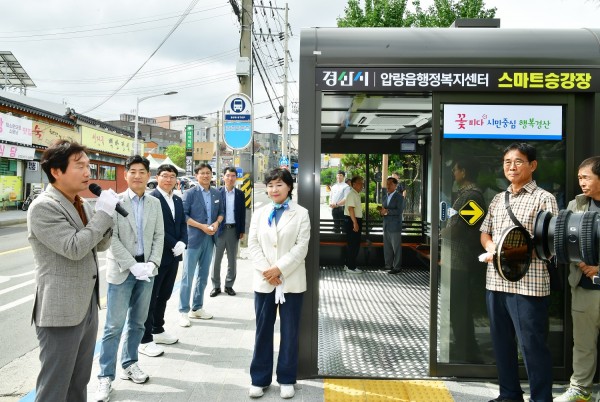 이번 스마트승강장은 대중교통 이용객이 많은 압량읍 행정복지센터 버스정류장에 마련됐다.