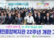 영천시장애인종합복지관, 개관 22주년 기념행사 개최  영천시장애인종합복지관은 16일 ‘스물두 번째 봄, 더 크게 빛나는 도약’을 주제로 개관 22주년 기념행사를 했다. 이번 행사에는 지역 장애인과 주민, 내빈들이 참석한 가운데 복지관의 22주년을 축하하며 의미 있는 시간을 가졌다. 기념식은 1부와 2부로 나눠 . . . 작성자 경일신문 / 작성일 03-19